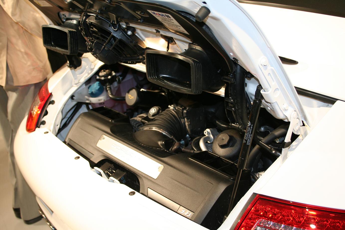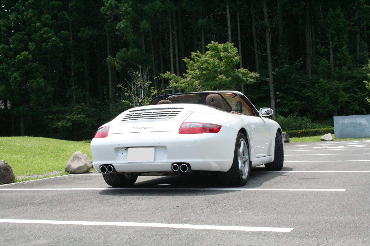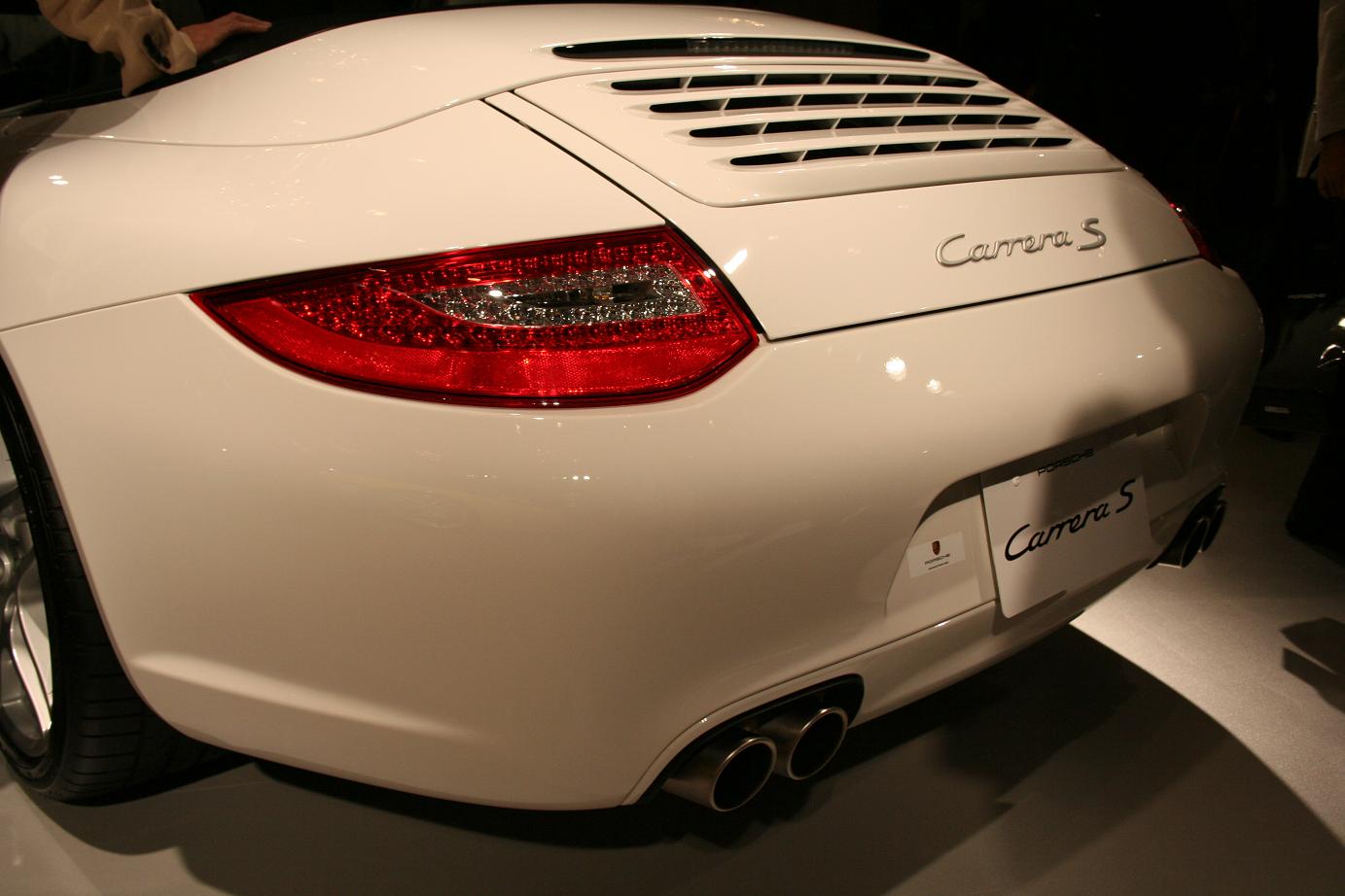 そのど真ん中においてあったのが、キャララ・ホワイトの 997カレラ S・カブリオレ。 一瞬嫉妬の目。