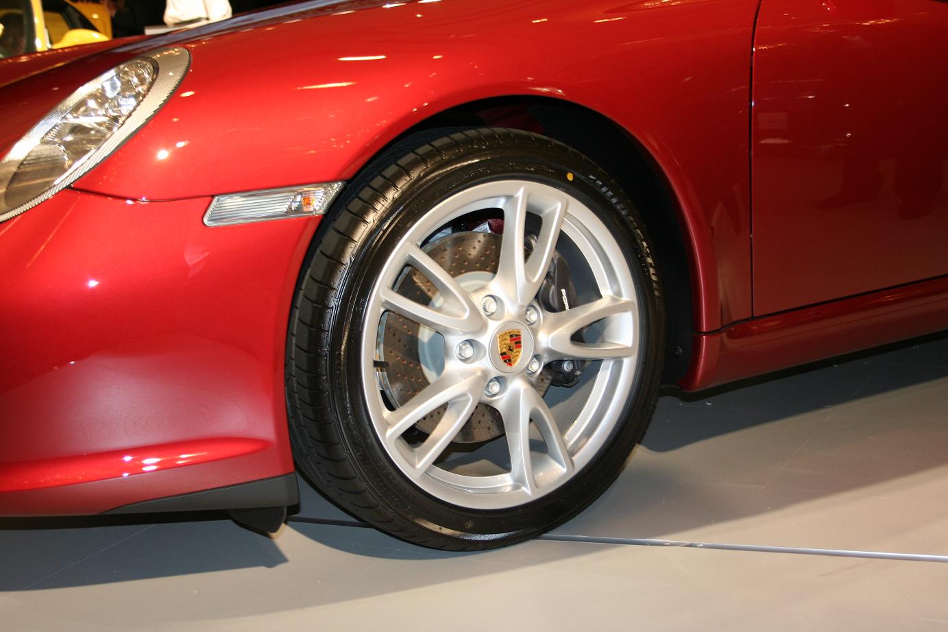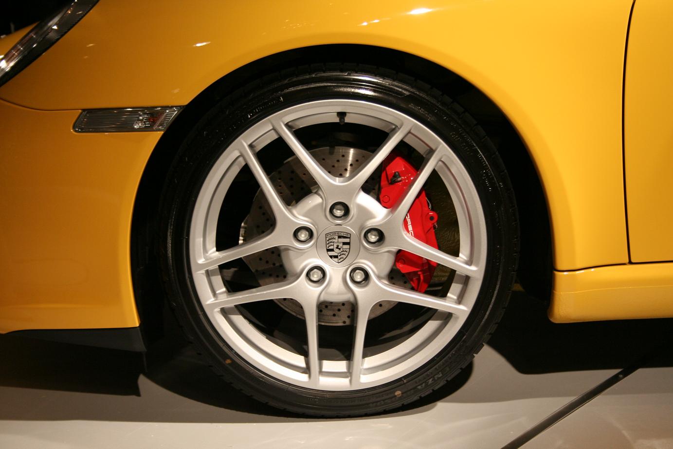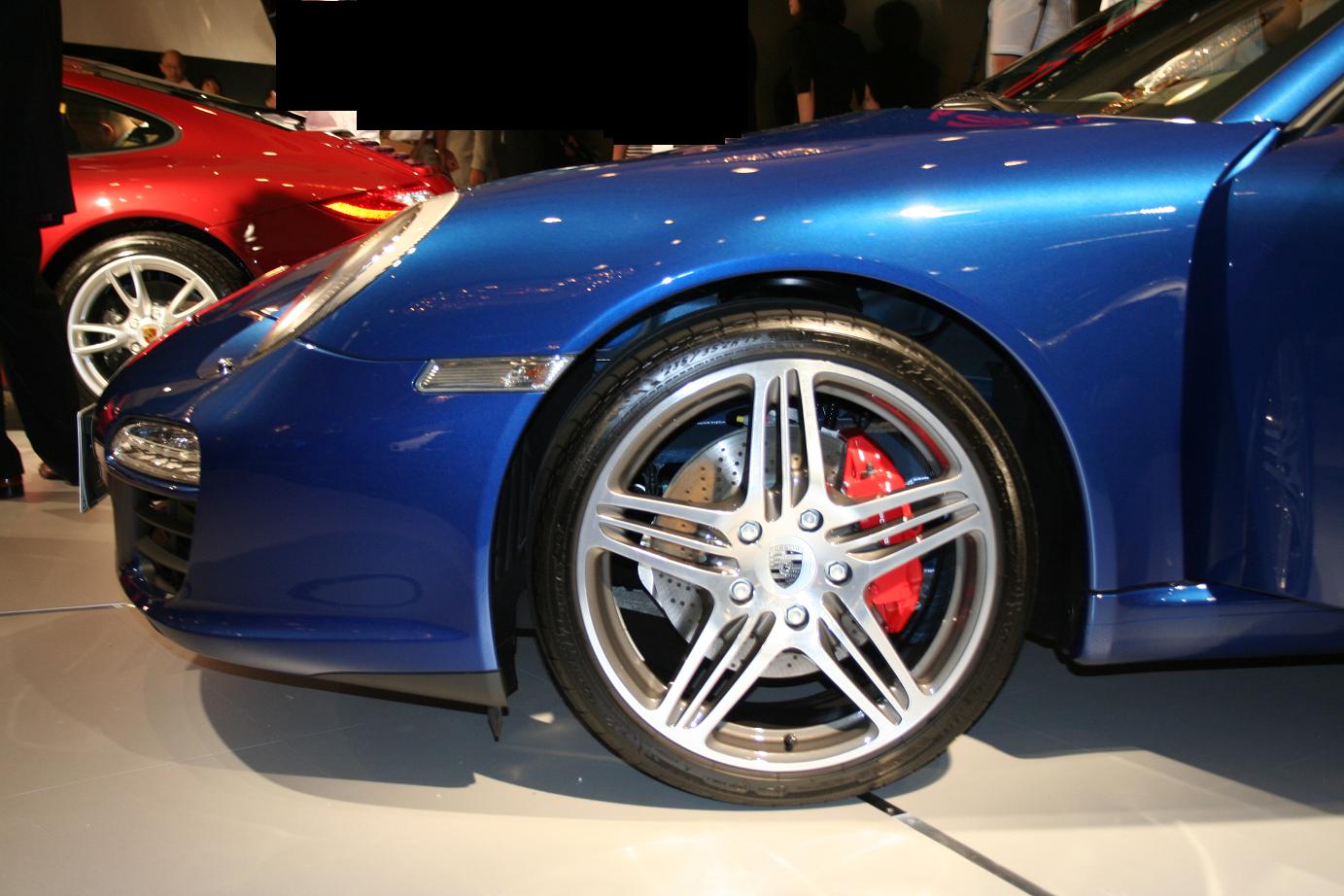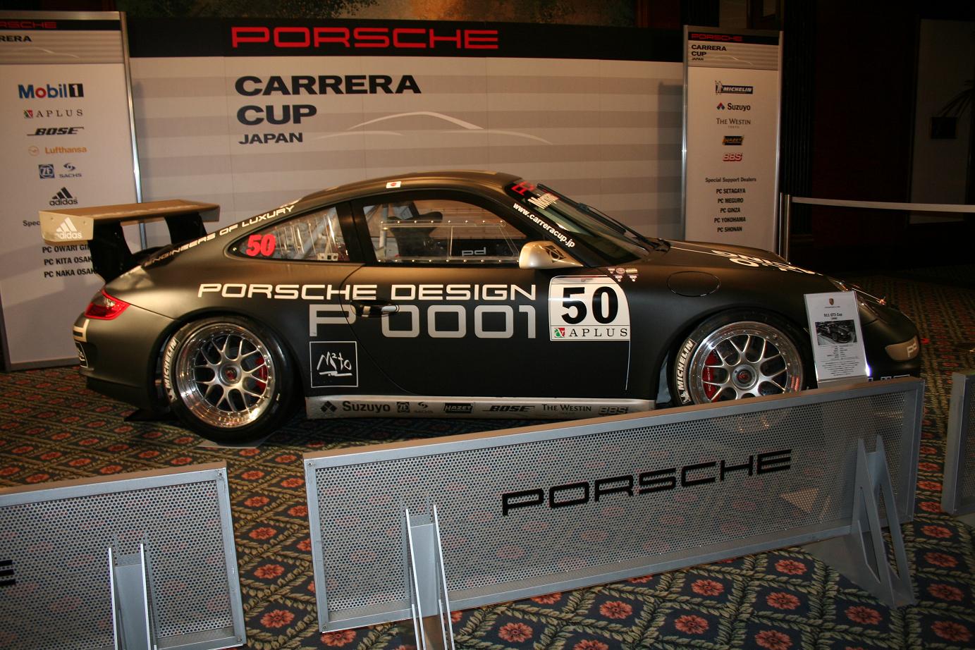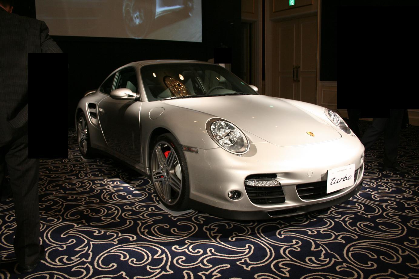 昨年はカイエン GTS と 911 GT2 が正面に飾られていましたが、今年は 997がひな壇を