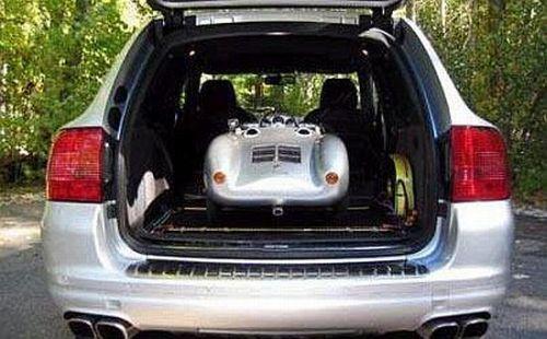 ミニ 550・スパイダーの大きさは、セカンド・シートを倒したカイエンの後部にすっぽり
