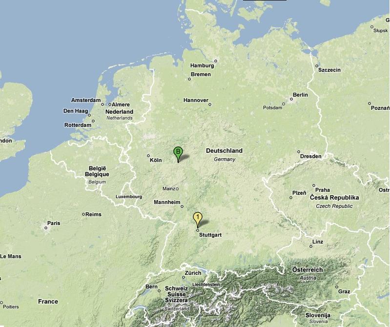 997モデル組立工場があるシュトウトガルト・ツッフェンハウゼン ( 下の地図 " 1 " ) から