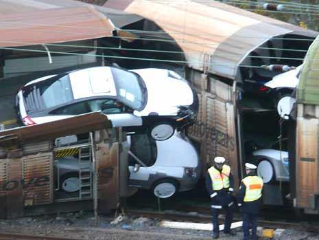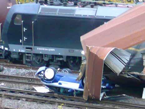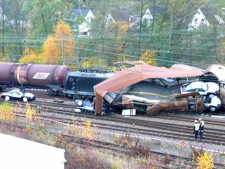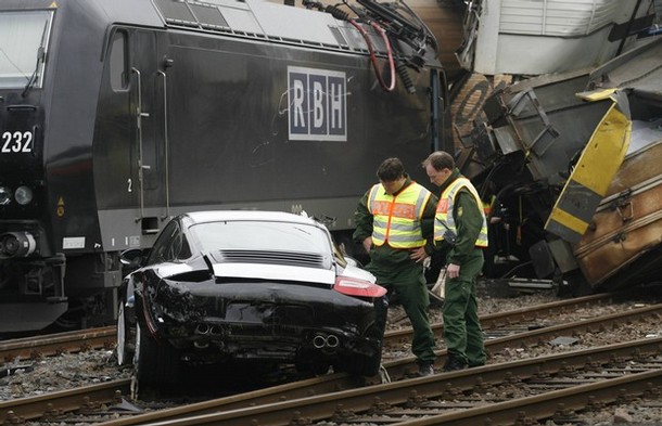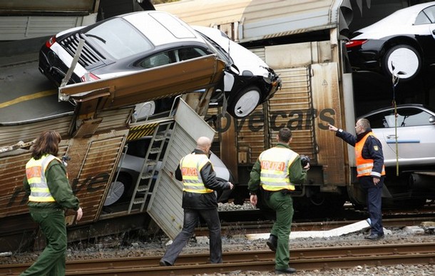 なんとなんと、106台のポルシェの新車 ( 997 ) が積み込まれ輸送中でしたが、この列車が脱線。