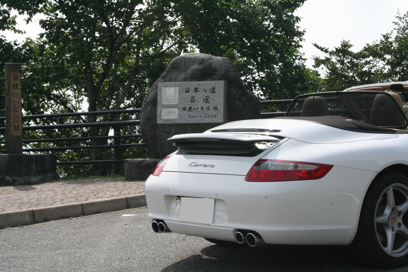 登りの第 2いろは坂、2車線で比較的走りやすい道です。 途中の見晴台でこの記念写真を撮っているときに、