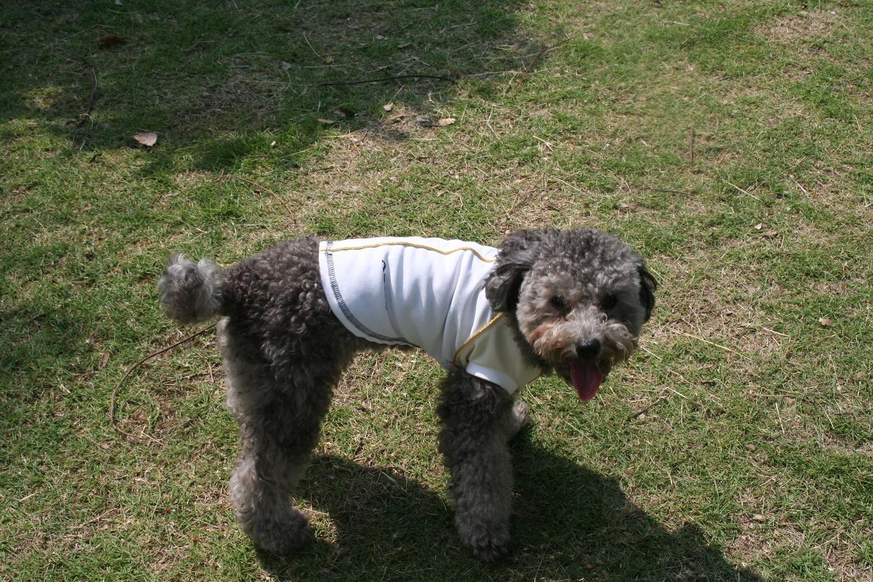 途中の SA でワンコのユーロはドック・ランで一休み。 発汗効果があるクルール・ビズを着込んで