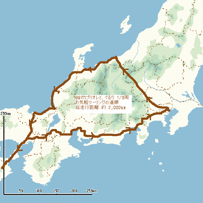 東名高速道 → 自宅へと、総走行距離約 2,000km に及ぶ走り倒しドライブ。