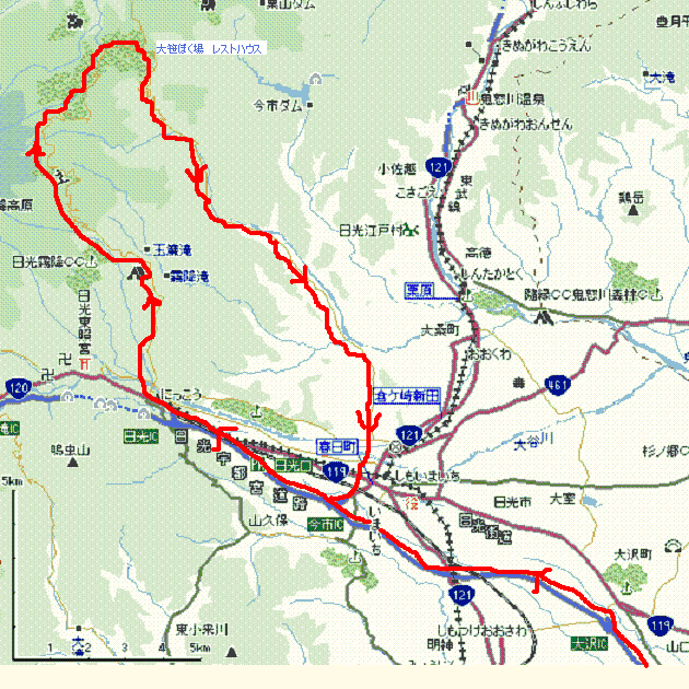 ⇒ あとはひたすら霧降高原道路の一本道 (県道 169号線) ⇒ 大笹牧場レストハウス (駐車場は広い)