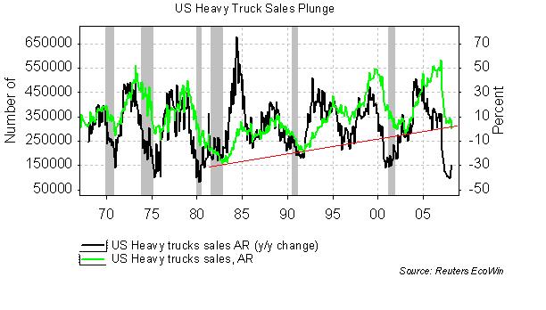 低水準となったことなどで建設ブームが終焉。 この反動からライトおよびヘビー・トラックなどの