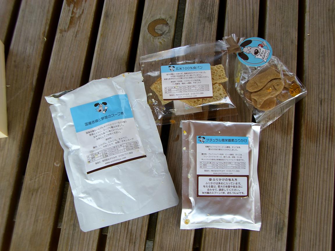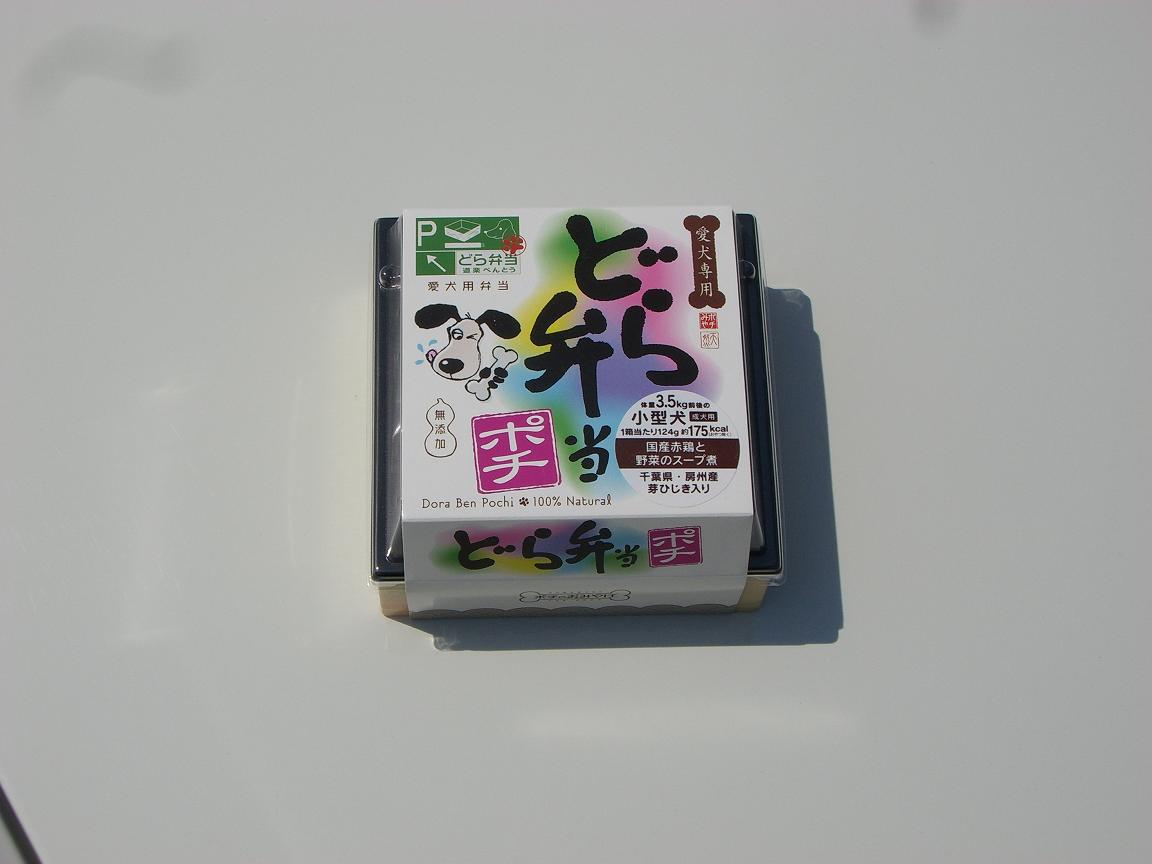 小さなお弁当。 わんちゃん用で中身はレトルト・パックになったトリのささみやクッキーなど。