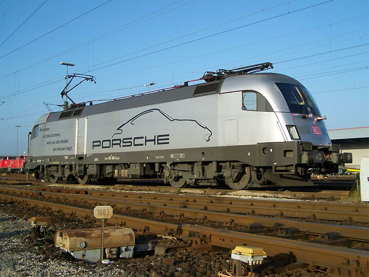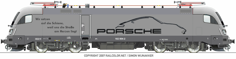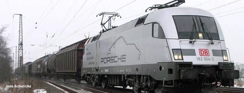 モデル名、「 DB 182 004 Porsche 」 。 ドイツ鉄道 182-004号、 ポルシェのロゴマーク ( CM ) 入り