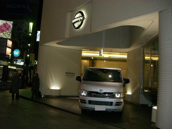 和光のビルも灯火消えています。 ところが、和光の斜め前にある 日産ギャラリーで なんと...。