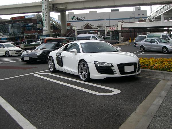 現着し まったりと自販機のコーヒーを飲みながらふと周りを見渡すと、なっなんと 「 アウディ R8 」 が