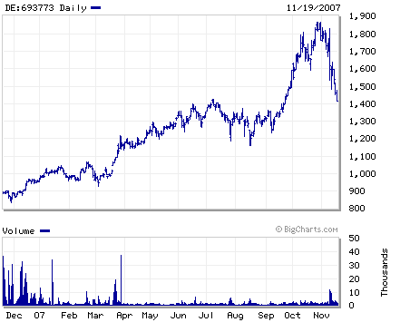 信用不安が増し、世界の株価が全面安の局面に陥ったことにポルシェ株も連れ安となっていることも