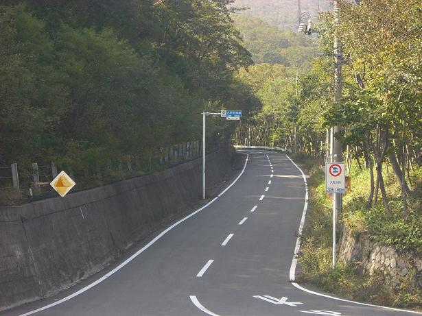 下山に利用した県道 4号線は、対面通行ながらも道幅が広く、舗装も完璧。 定期大型バスも楽々