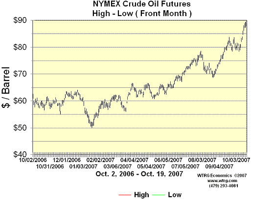 買い込まれ、先週金曜日 (10/19) には高値 1バレル 90.07ドルと有史来の最高値を付けて