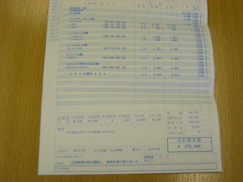 重量税が 63,000円なので、消耗品や検査費用は約 17.5万円といったところか。