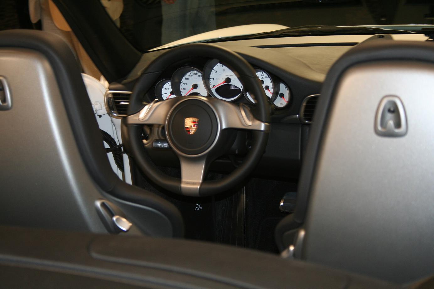 そのど真ん中においてあったのが、キャララ・ホワイトの 997カレラ S・カブリオレ。 一瞬嫉妬の目。