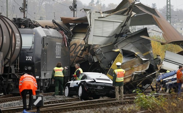 なんとなんと、106台のポルシェの新車 ( 997 ) が積み込まれ輸送中でしたが、この列車が脱線。
