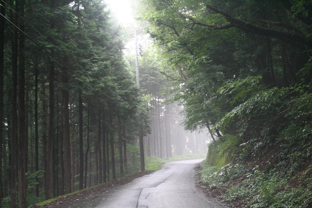 その後 飯盛峠や大野峠など数カ所の峠を経由。 両サイドが樹木に覆われ、夏真っ盛りにも