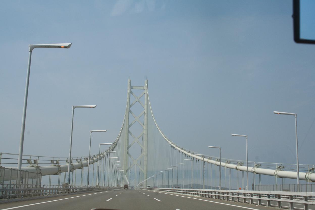 まずは明石海峡大橋。 全長 3,911m の世界最大の吊り橋で、海上からの高さは 298.3m。