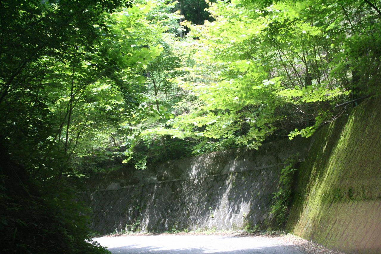 対面通行ですが、新緑が綺麗です。 なによりも通行車両がほとんどないため、「俺の道」状態。