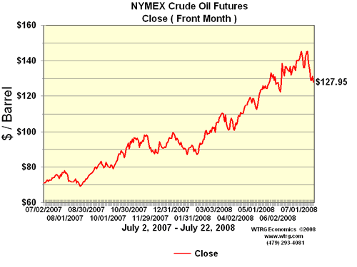 さて昨日 7月 22日 (火) の NIMEX における原油価格引け値は、1バレル 127.95ドル 前日比