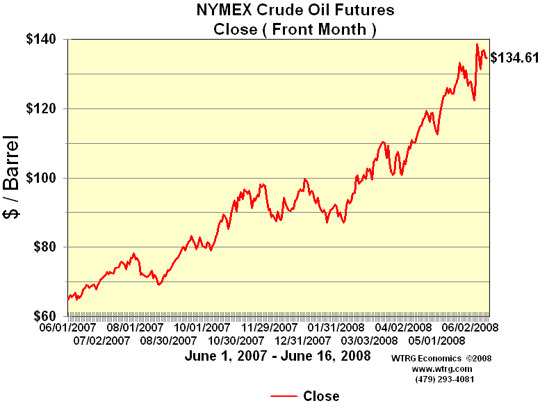 それまでの高値であった、1バレル 139.12 ドル (今年 6月 6日) をあっさりと更新し、昨日は