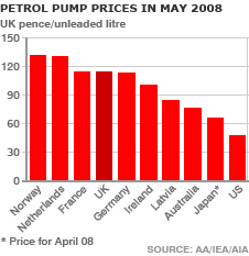 以外なことに、産油国であるノルウェーのガソリン価格が最も高く、1リットル当たり 1.30ポンド