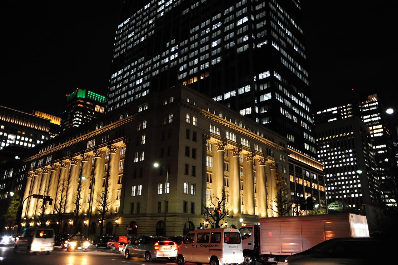 真正面が東京駅。 いつもは煉瓦造りの建物にライトが照らされているのですが、