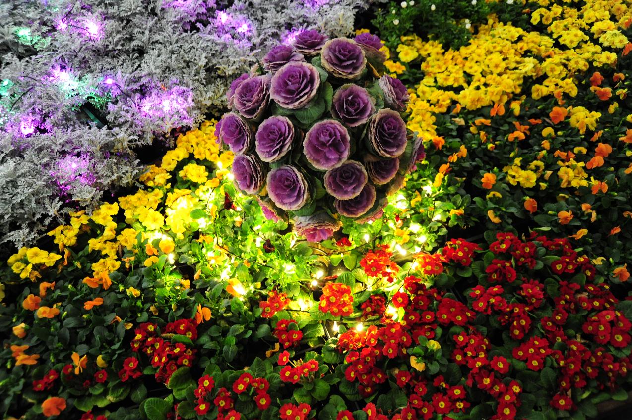 道ばたの花壇にも、イルミが一杯。 夕ご飯を食べていなかったので、美味しそうに見えます。