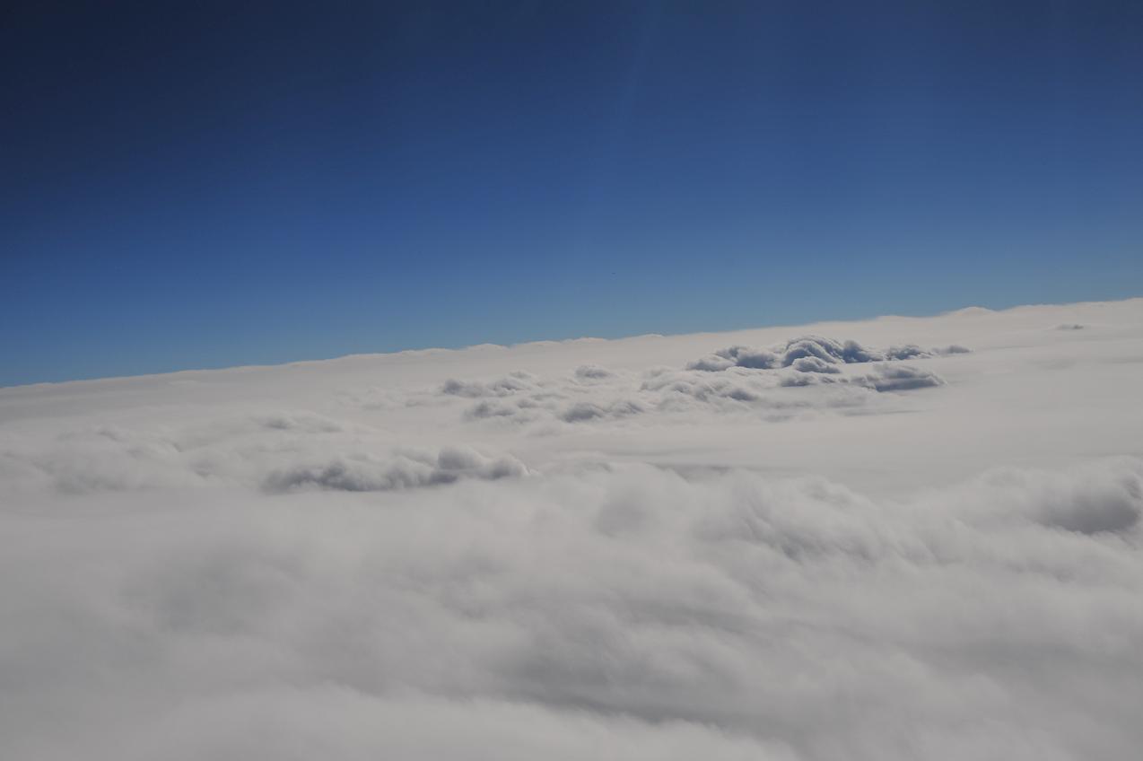 どこまでも続く直線道。 カリフォルニアの青い空 ( イーグルスの歌か ? ) のように高速道は真っ直ぐ。