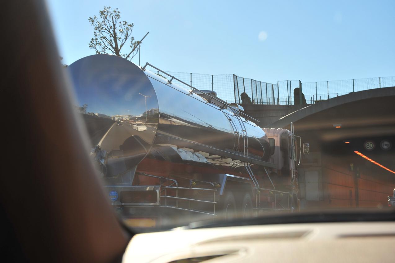 今日も元気だ、私もピカピカ・タンクローリーと ご一緒です。